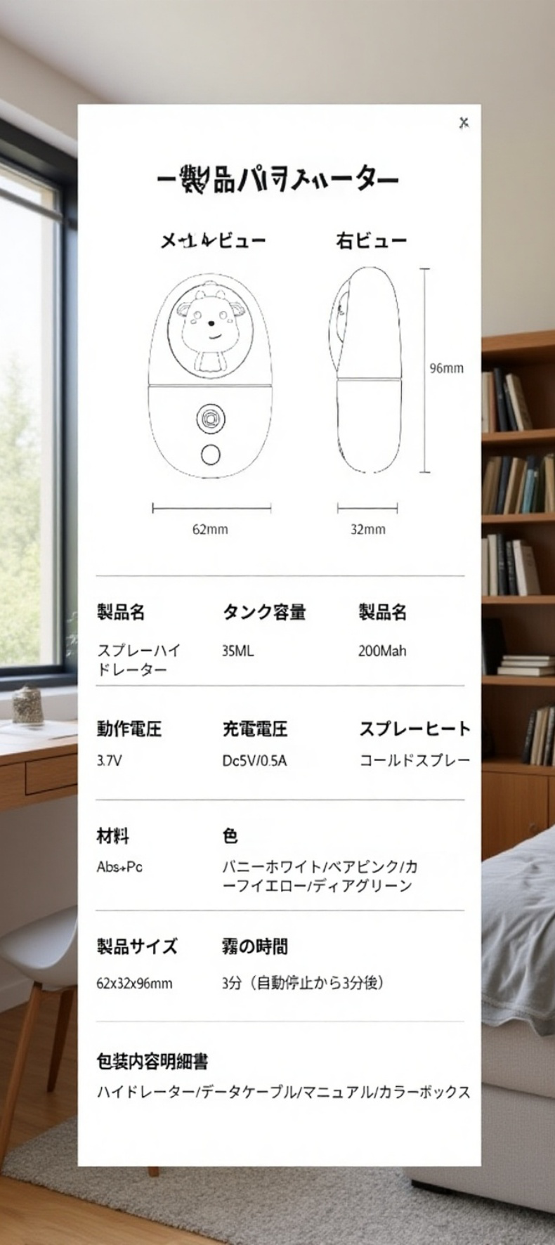 ハンディ冷却スプレー美顔器 USB充電式加湿器